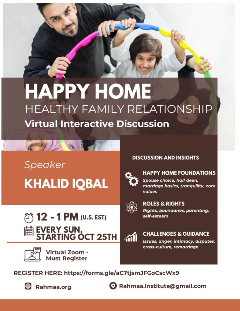 We are pleased to announce an exciting 8-week course on “Happy Home—Healthy Family Relationship.” One-hour virtual session every Sunday from 12 to 1 PM starting October 25, 2025 Please register